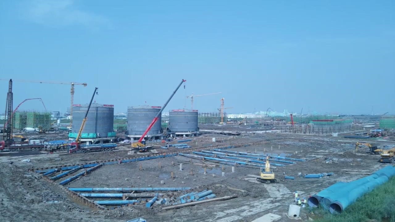 ⑶聯(lián)堿三標(biāo)段420脫鹽水站室外水池底板鋼筋綁扎;810火炬基礎(chǔ)短柱砼澆筑;561事故水池第一段砼澆筑完成,第三段開始鋼筋綁扎;540小蘇打裝置基礎(chǔ)防腐、4個(gè)設(shè)備基礎(chǔ)養(yǎng)護(hù);160編織袋庫(kù)防腐粉刷;535成品庫(kù)房33軸~44軸筏板鋼筋模板安裝、筏板砼澆筑、承臺(tái)及基礎(chǔ)梁開挖。
