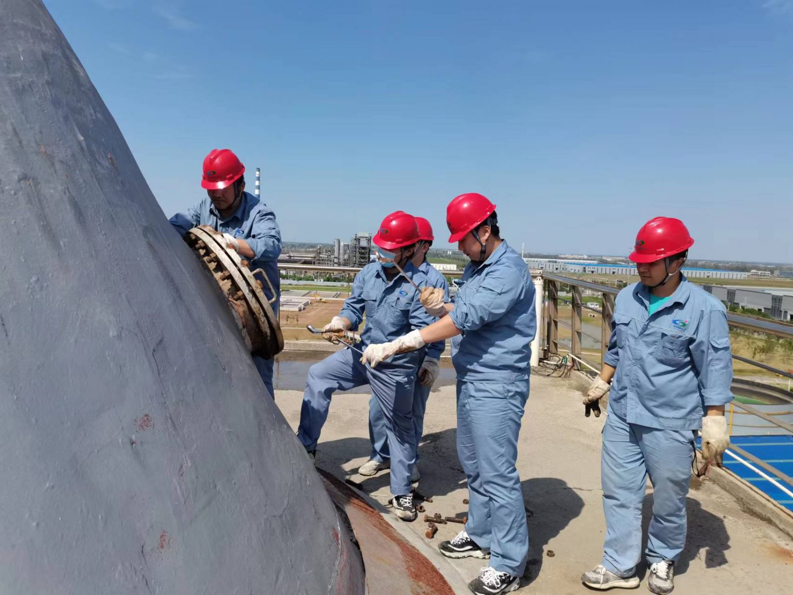 為了保證停車和開車工作的順利進行,停車期間,實習(xí)職工主動協(xié)助當班人員打開16個人孔,并在實際操作中重點學(xué)習(xí)設(shè)備檢修、清洗的具體操作流程以及消缺重點難點等。檢修結(jié)束后又全流程參與16個人孔的封堵流程。“平時員工實習(xí)是看不到設(shè)備內(nèi)部結(jié)構(gòu)和檢修全流程的。這次停車檢修消缺,很多設(shè)備都可以打開,對大家來說是一次很好的學(xué)習(xí)機會。通過這次檢修,大家積累了寶貴的檢修經(jīng)驗。”檢修結(jié)束后,大家如是說。